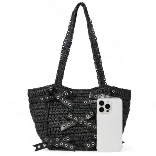 Black Shoulder Bag with Bow Details