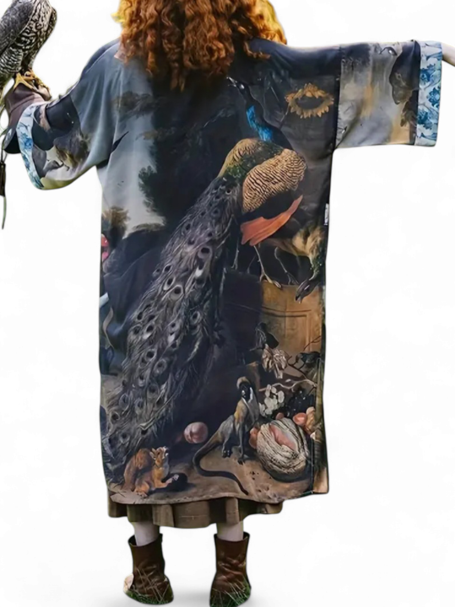 Featuring rich colors and a beautiful print, this kimono will make a statement wherever you go. Embrace the richness of life and elevate your style with this sophisticated piece.